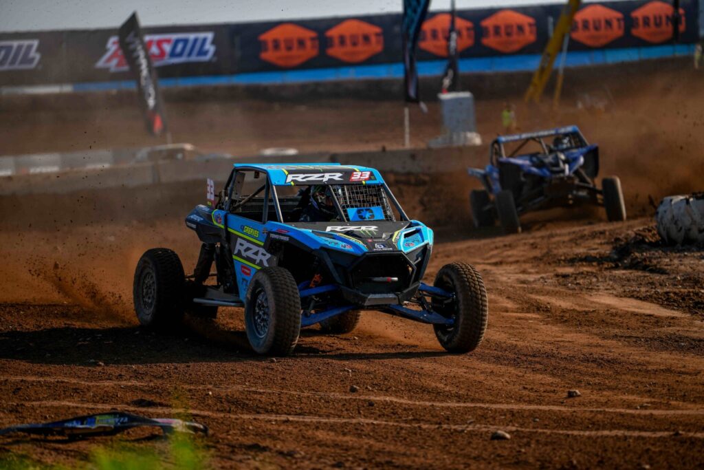 Pro Buggy continues to be the tightest championship battle in AMSOIL Championship Off-Road, with four drivers separated by less than 25 points entering the weekend—and just a single point separating the top two, Jordan Bernloehr and Billy Buth. The two title contenders lined-up side-by-side on the front row, but it was Buth who struck first, capitalizing when Bernloehr drifted wide early to take the lead.