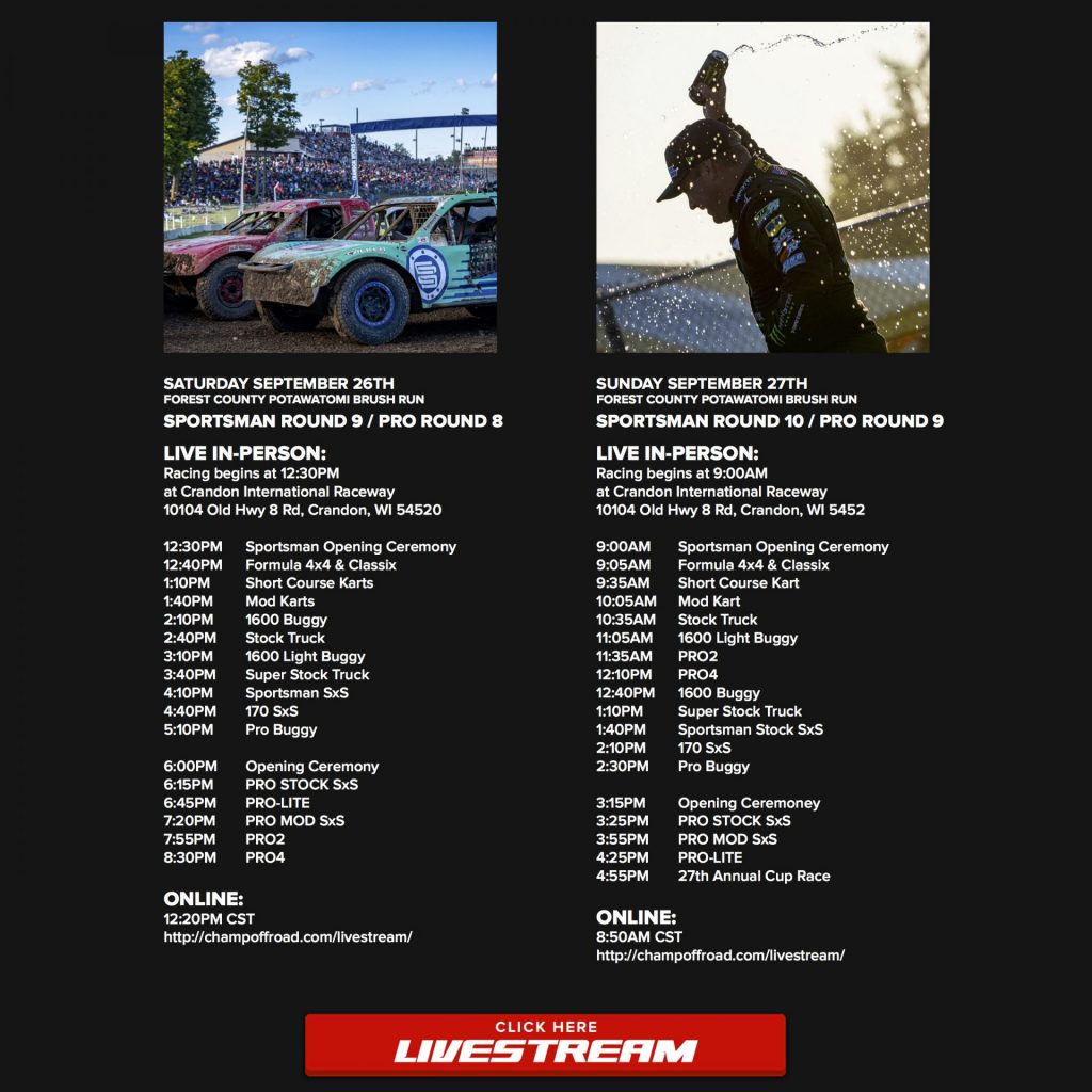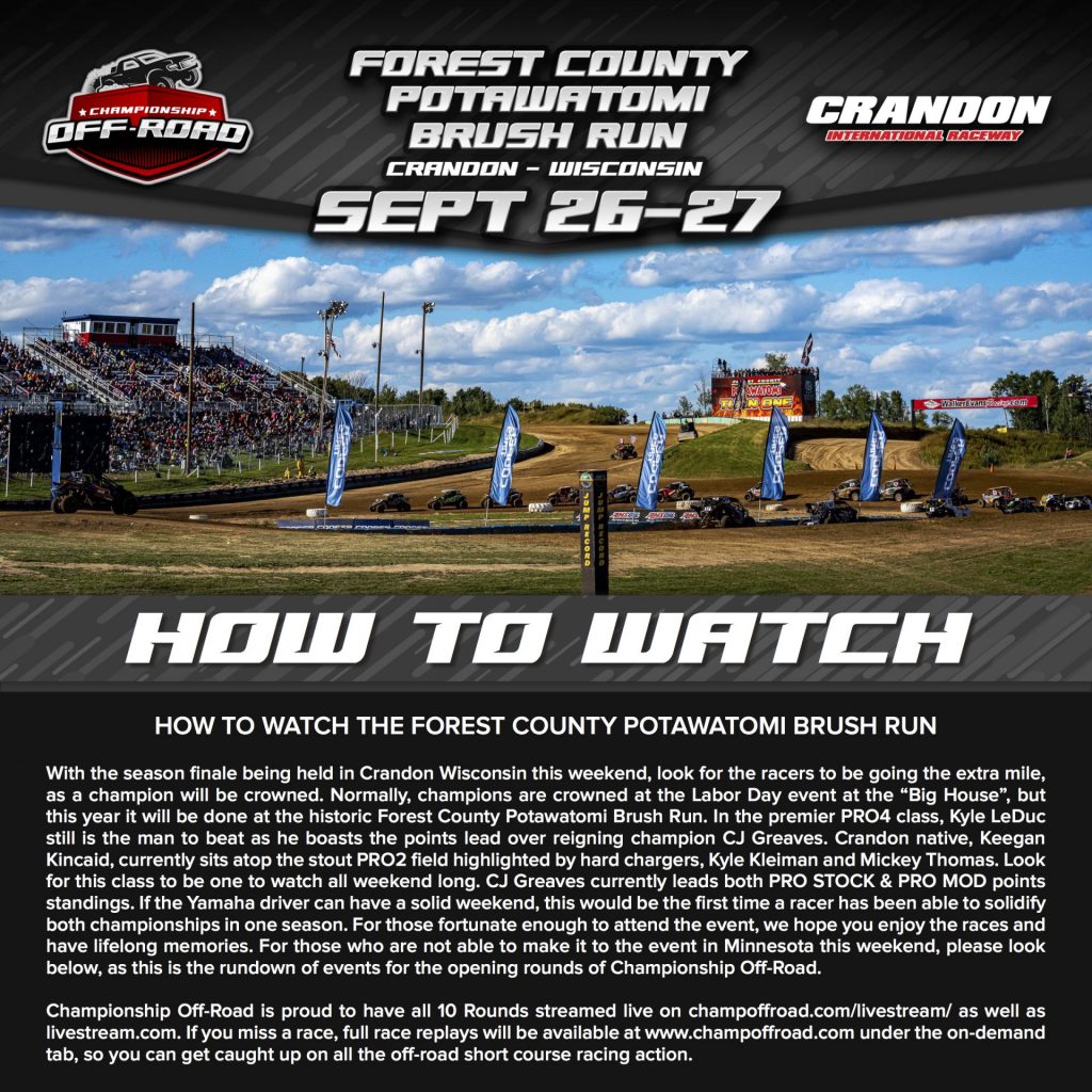 How to Watch the Forest County Potawatomi Brush Run Sep 24, 2020 Previous Post ← Forest County Potawatomi Brush Run Historical Package Next Post Champ Off-Road Podcast Presented by AMSOIL – Episode #19 →