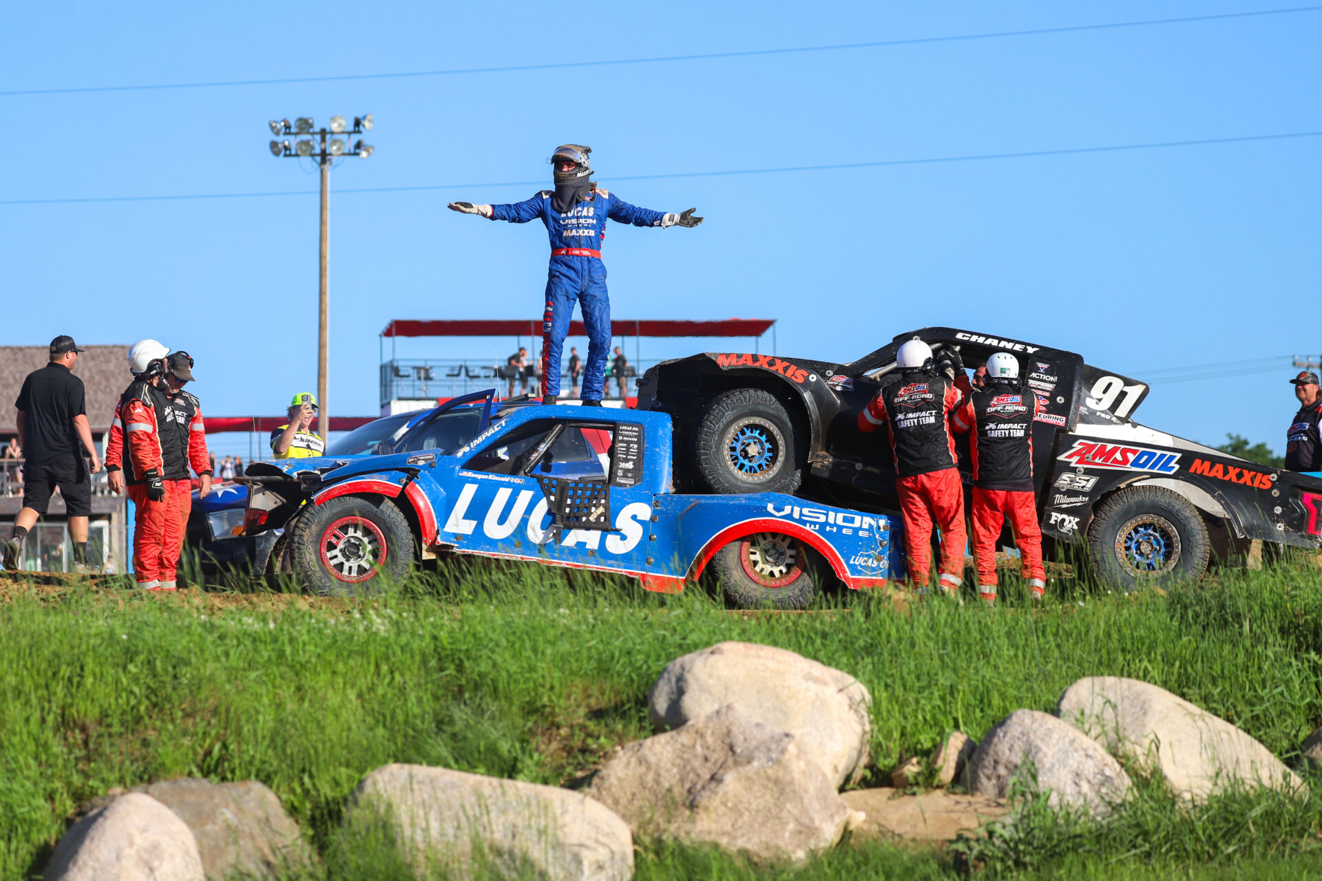 Crandon, Wis. ~ Heavy rains soaked the Crandon International Raceway overnight, forcing a nearly three-hour delay to the start of round five at the Forest County Potawatomi Brush Run. Despite the muddy conditions, AMSOIL Championship Off-Road presented by Brunt powered through a wild Saturday at the Big House, where high speeds, land rush starts, and … Continued