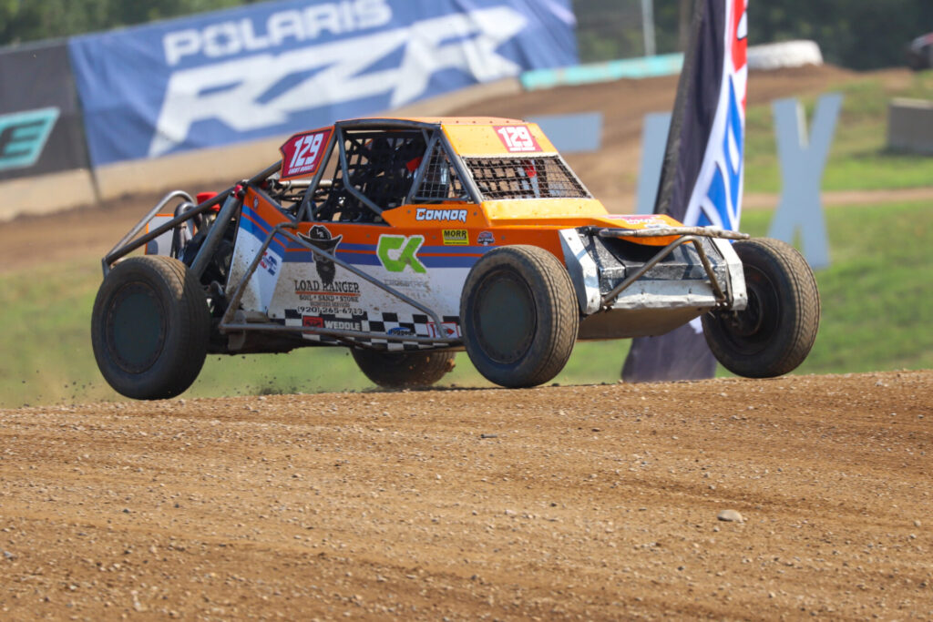 1600 SINGLE BUGGY: It’s been a boom-or-bust season for Connor Schulz in 1600 Single Buggy, and it was all boom at ERX as he delivered a dominant weekend sweep. Stuck in ninth off the start, Schulz methodically worked his way through the field, moving into second on lap four behind Travis Trelstad. Two laps later, he took over the lead and never looked back, driving to his fourth win of the season.