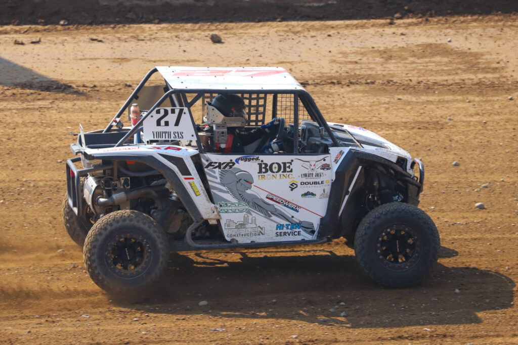 YOUTH SXS: Another close battle unfolded in the Youth SXS class as points leader Logan Fritzinger and Emma Lytle went head-to-head once again. With two laps remaining, Lytle appeared to make a clean pass for the lead, but officials determined the move came under a yellow flag situation.